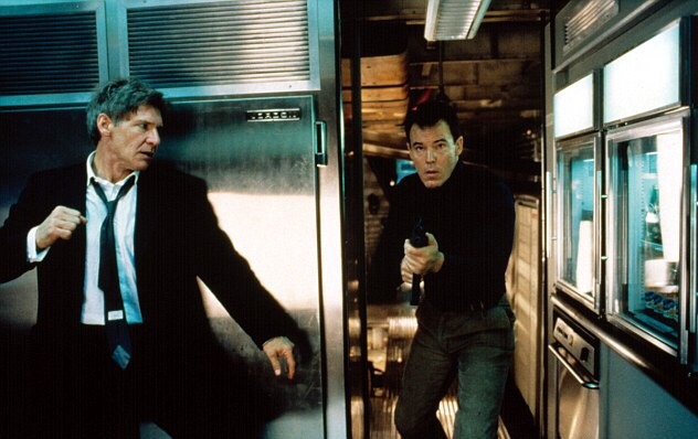 A solid action movie with Harrison Ford in the role, i.e., Die Hard on Air Force One.